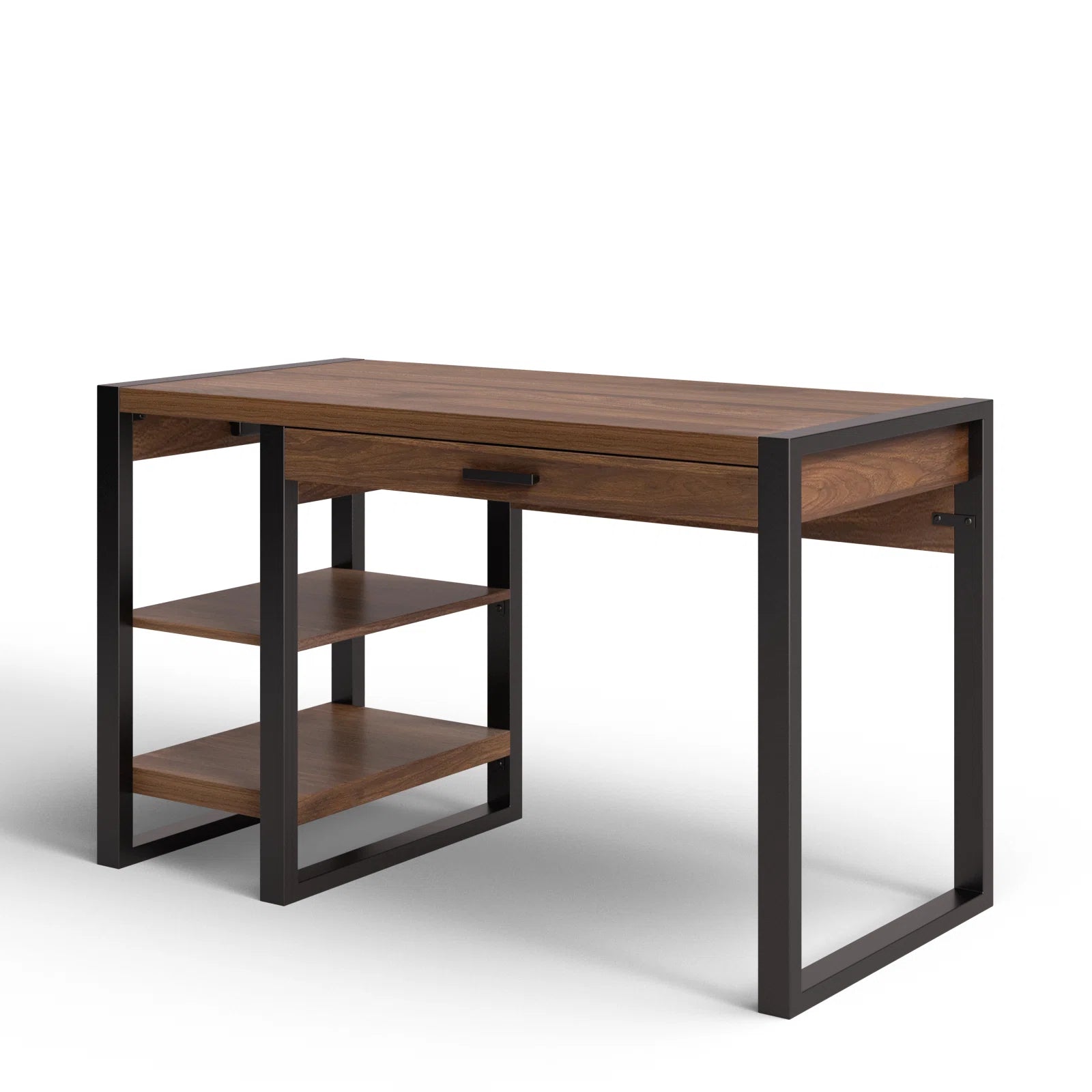 1-Drawer Desk with USB Port & Open Storage – Modern Industrial Workspace