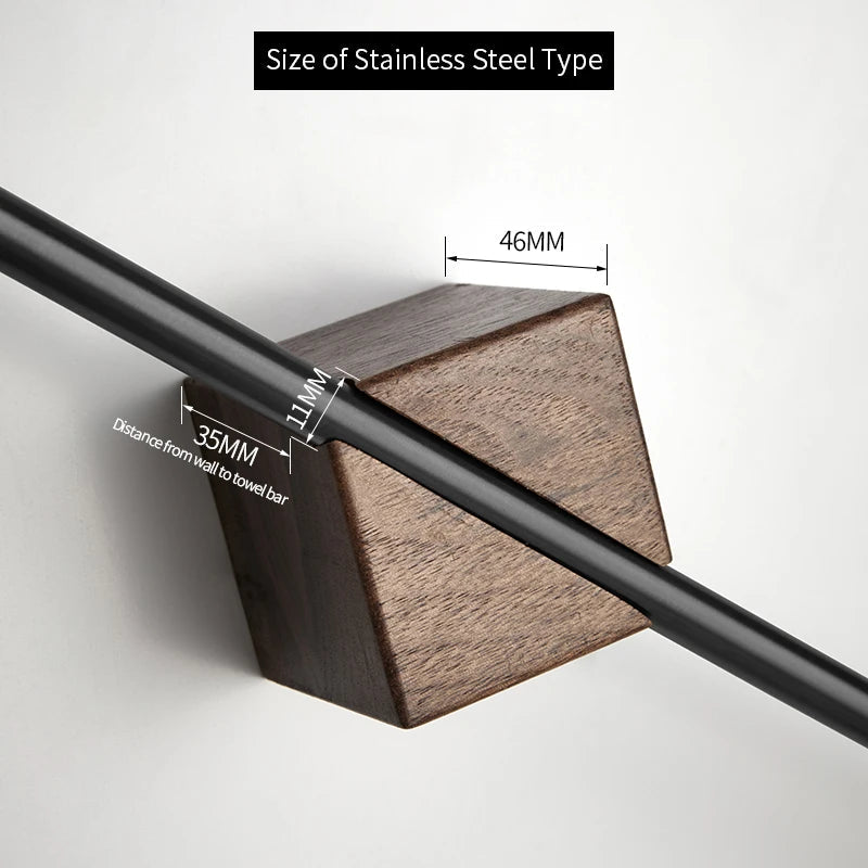 Elevate your bathroom or living space with this minimalist and geometric wall-mounted towel bar, combining the warmth of wood with the elegance of golden or matte black metal rods. Designed for both functionality and aesthetics, this unique towel holder adds a touch of modern sophistication to any interior.
