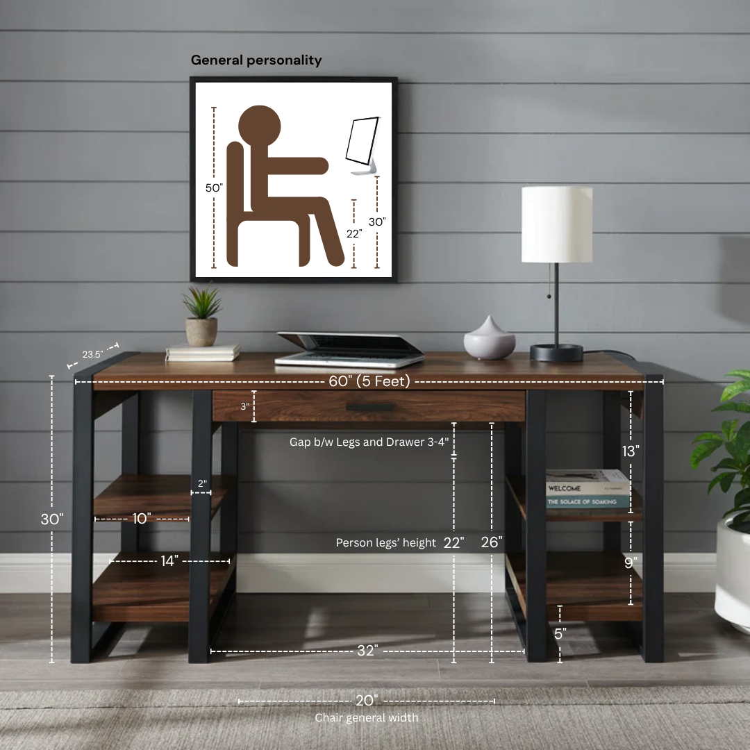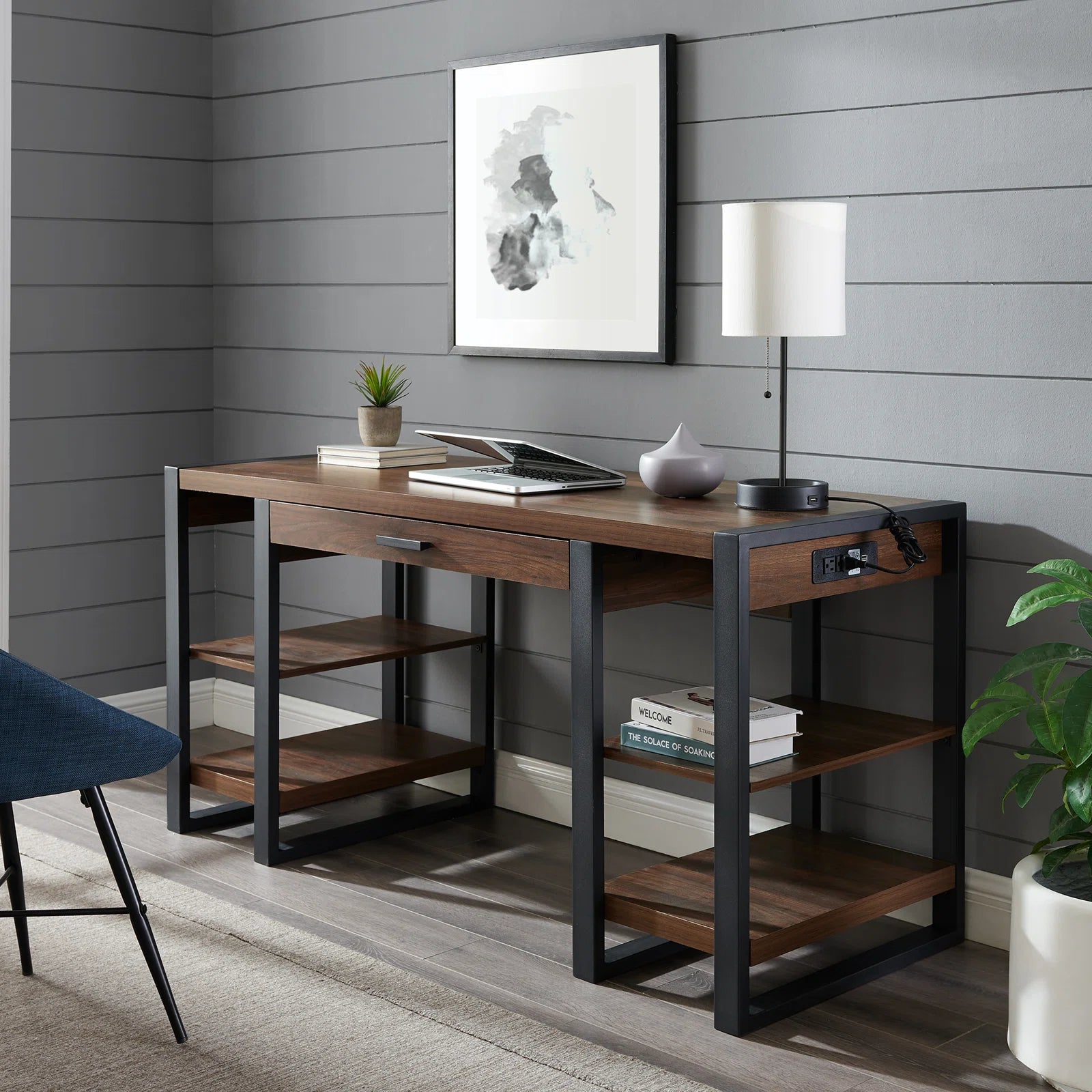 Maghji 60" Tech Desk with USB Ports & Open Storage – Modern Industrial Office Hub