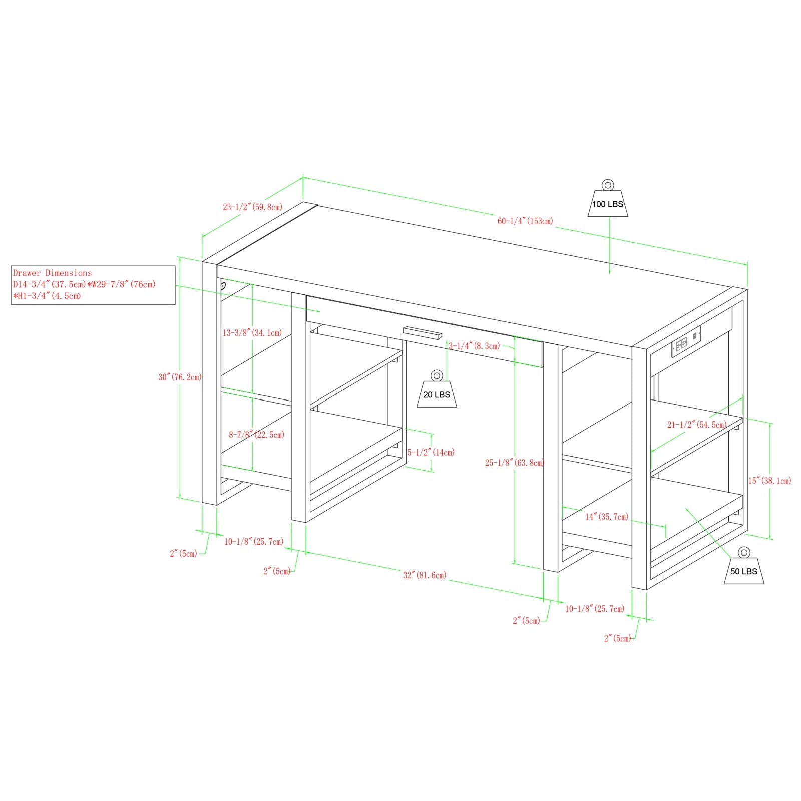 Streamline your workspace with the Maghji's Tech Desk—an elegant fusion of industrial design and everyday functionality. With a 60-inch wide surface, this desk offers ample room for work, study, or multitasking, while built-in USB ports and power outlets on the side panel make charging devices fast and convenient.
