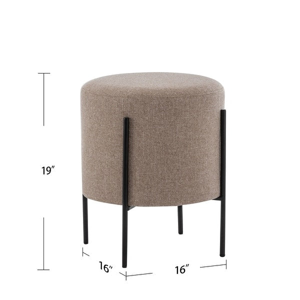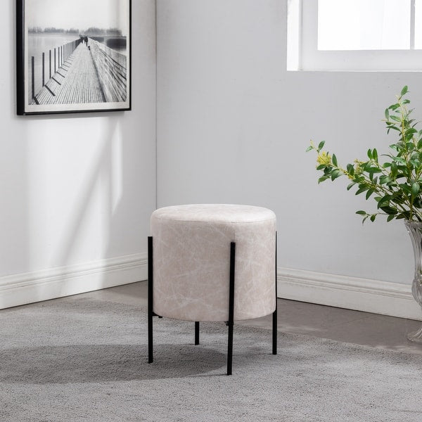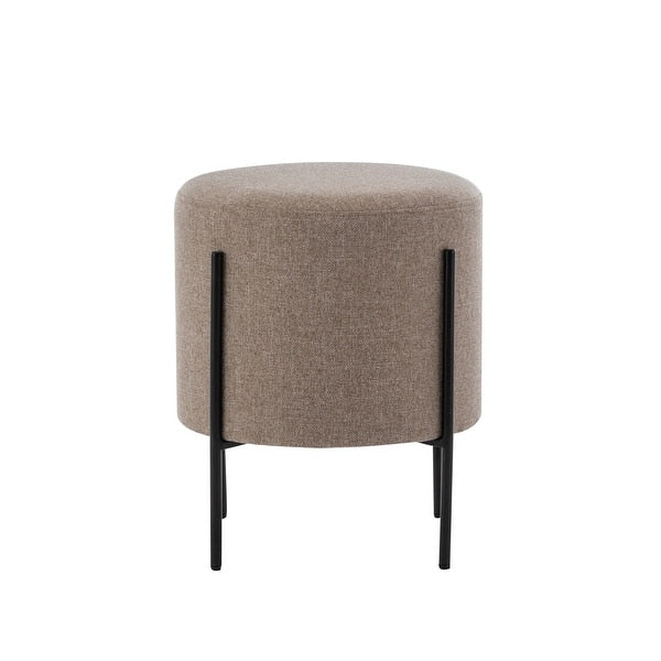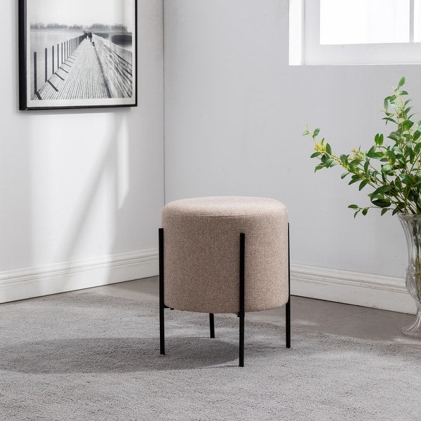 Maghji Modern Round Ottoman with Metal Base – Minimalist Upholstered Stool