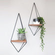 Transform your living space with these striking geometric wall shelves that blend modern aesthetics with practical storage. The set features two diamond-shaped shelves crafted from sleek metal frames in matte black, each supporting a sturdy wooden platform. Perfect for displaying your favourite plants, decorative items, or small collectibles, these floating shelves create an eye-catching dimensional effect on any wall. The larger shelf measures approximately 40 cm in height, while the smaller companion piece is proportionally sized for visual balance. The minimalist design incorporates clean lines and angular geometry, making these shelves ideal for contemporary homes, offices, or retail spaces. The wooden platforms provide ample space for potted plants, allowing you to create a stunning vertical garden display. These shelves arrive ready to mount, with all necessary hardware included for secure installation. The durable construction ensures long-lasting stability for your displayed items, while the versatile style complements any interior décor scheme.