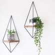 MAGHJI Set of 2 Geometric Floating Wall Planters, Triangle Design with Metal and Wood, Black Finish
