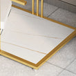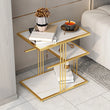 The Modern Elegance Layered Table is a sophisticated blend of contemporary design and functional storage. Featuring a stunning gold metal frame with tiered marble-effect shelves, this table is perfect for displaying décor, books, or everyday essentials. Its sleek lines and minimalist charm make it a versatile addition to modern living spaces, effortlessly elevating your home's style.