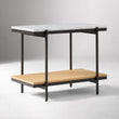 Pierce Modern Marble Side Table with Black Metal Frame and Natural Wood Shelf – Luxury End Table for Living Room or Bedroom