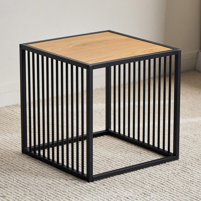 The Cage Side Table – Compact Metal & Wood Accent Table